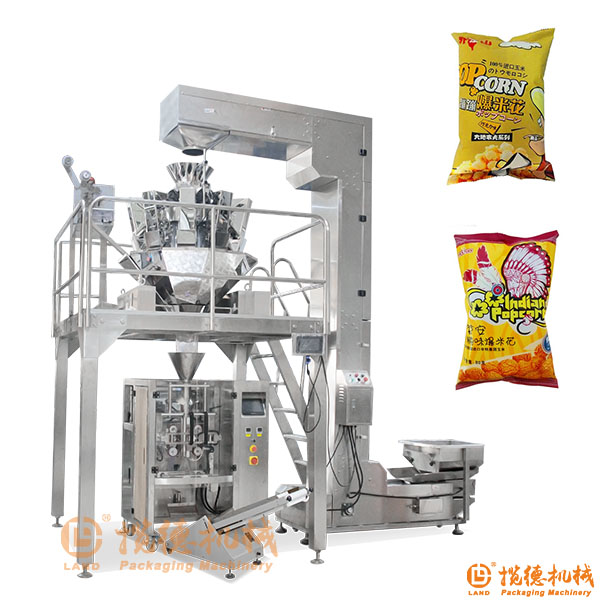 爆米花包裝生產(chǎn)線由420A立式包裝機(jī)、高精度電子組合稱平臺、Z型物料提升機(jī)、成品輸送機(jī)組合而成。