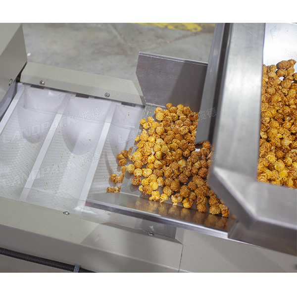 爆米花包裝機(jī)采用彩色觸摸屏和穩(wěn)定可靠的雙軸高精度輸出的PLC控制、制袋、計(jì)量、充填、封合、打碼、切袋一次性完成。氣路控制和電路控制電箱獨(dú)立分離,噪音小,電路更穩(wěn)定。采用雙皮帶伺服拉膜:拉膜阻力少,包裝袋成型好,更美觀,皮帶不易磨損。采用伺服控制, 實(shí)現(xiàn)高精度定位,尺寸準(zhǔn)確。采用外置式放膜機(jī)構(gòu),包裝膜安裝更簡單、更容易。包裝袋的偏差調(diào)整只需在觸摸屏上調(diào)整即可,操作簡單。整機(jī)采用封閉式機(jī)構(gòu),有效防止粉塵進(jìn)入機(jī)器內(nèi)部。