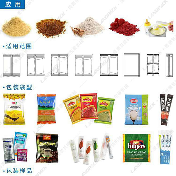 該小袋粉末包裝機(jī)能完成計量、充填、等工作。由于獨(dú)到的設(shè)計,以至更適用于包裝那些易流動或者流動性極差的粉粒狀物料,如獸藥、粉粒狀添加劑、白砂糖、棉白糖、葡萄糖、味精、固體飲料、固體醫(yī)藥、碳粉、爽身粉、農(nóng)藥、染料、香精香料等。