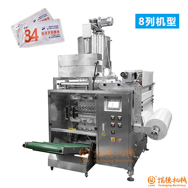消毒洗手凝膠包裝機是用于包裝四邊封口醬類物料的全自動多列包裝機,該機分為4列、6列、8列等多種類型,采用液體活塞泵或者蠕動泵進行物料的計量和灌注。如果需要10或者跟多,可以根據(jù)用戶的需求進行定制開發(fā)。