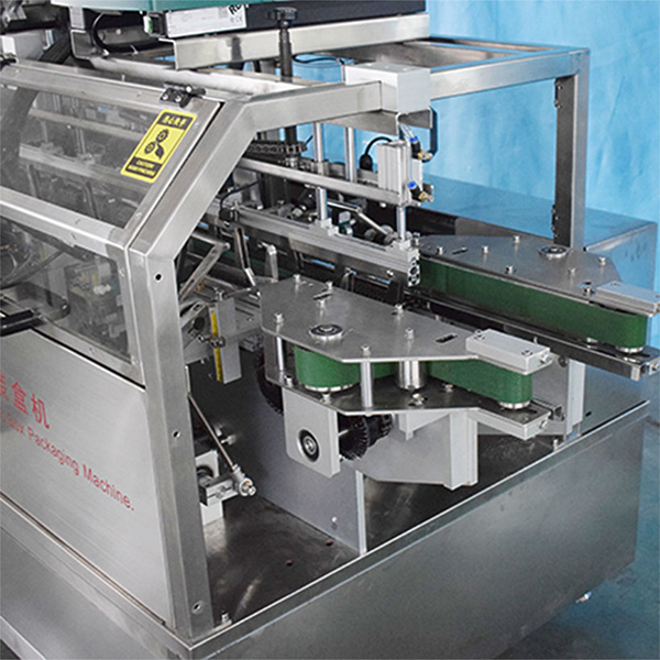3、裝盒機(jī)可單機(jī)使用,也可連線枕式包裝機(jī),將物品先裝袋,再裝盒。