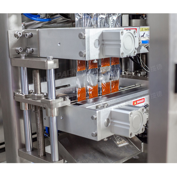 醬料包裝機(jī)選用高精總體輾壓式熱封輥?zhàn)鰹榉夂夏ゾ?,四角密封,多列袋方式,包裝更快、袋形整平、精美美觀大方,并選用的PLC加光學(xué)自動控制系統(tǒng),可全自動進(jìn)行計量檢定,制袋,添充,封合,斷開,復(fù)印出廠日期,切易撕口等工藝流程。本液體包裝機(jī)可用以食品類,化工廠,日用化工等制造行業(yè)的流食液體膏狀的包裝。如:洗發(fā)液,棒棒冰、植物油,液體飲品、水果汁,蘋果醬,無鹽黃油等。