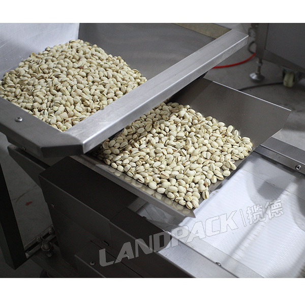 該臺(tái)開(kāi)心果包裝機(jī)是由給袋式包裝機(jī)組成的,在配合支撐平臺(tái)、Z型自動(dòng)上料機(jī)實(shí)現(xiàn)自動(dòng)化操作,該機(jī)的工作流程是:操作人員把物料倒入Z型上料機(jī)的料斗當(dāng)中,然后Z型上料機(jī)把物料輸送到電子稱(chēng)當(dāng)中進(jìn)行計(jì)量稱(chēng)重,然后進(jìn)行下料,充填、打碼、封口等一系環(huán)節(jié)完成包裝過(guò)程。
