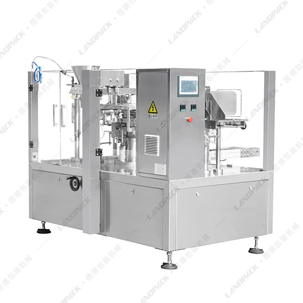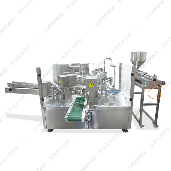 工作流程:上袋→打印生產(chǎn)日期→開袋→充填1→充填2→熱封→整形及輸出