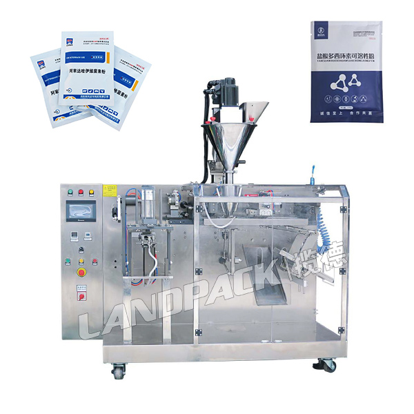 水平給袋式獸藥粉末包裝機(jī)是一款由:水平給袋機(jī)主機(jī)、振動(dòng)螺桿上料機(jī)、螺桿填充系統(tǒng)三大部分組成。該機(jī)適用于獸藥粉末、調(diào)味品、奶粉、素食粉、五谷粉、葡萄糖、生粉、面粉等粉劑物料進(jìn)行裝袋包裝。